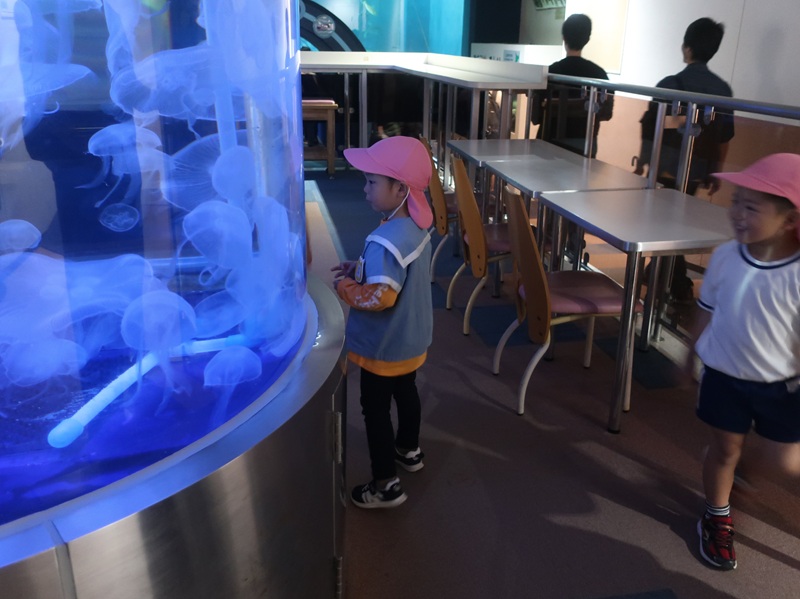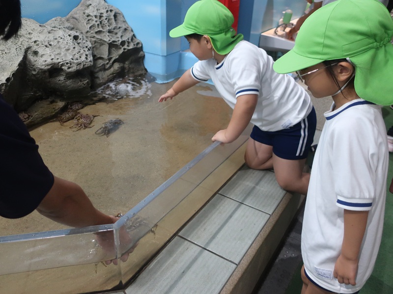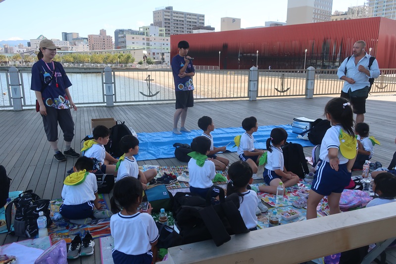 一日目は午前中電車を使い、青森駅前へ行きました。ワラッセを見学したり、ワラッセ横の海辺で水遊びや砂遊びを楽しんだり、八甲田丸を見学したりしました。お昼は砂浜近くで、波の音を聴きながら、愛のこもったおいしいお弁当を食べました。
