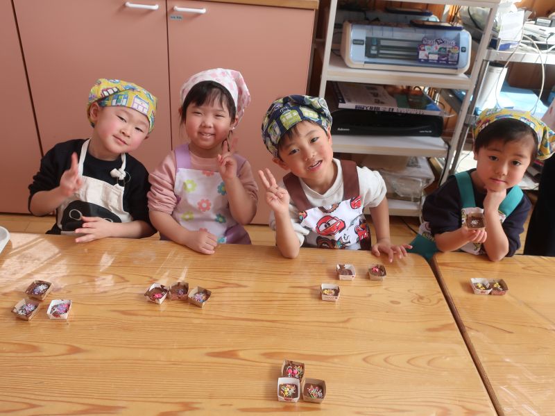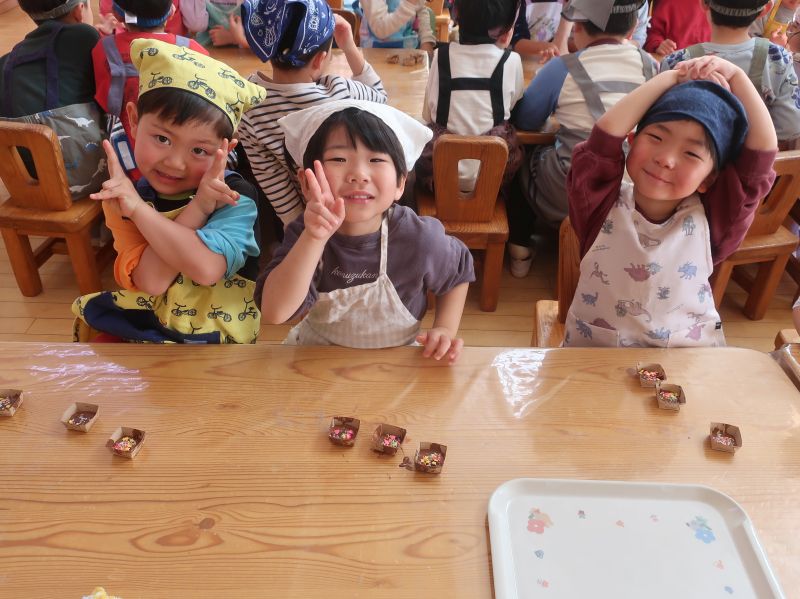 自己紹介では、上手に英語で年齢が言えた子、仮面ライダーが好きな子、ゼリーが好きな子などそれぞれの誕生者さんの個性が見えました。好きなお友達からプレゼントを手渡されどの子も嬉しそうでした♪