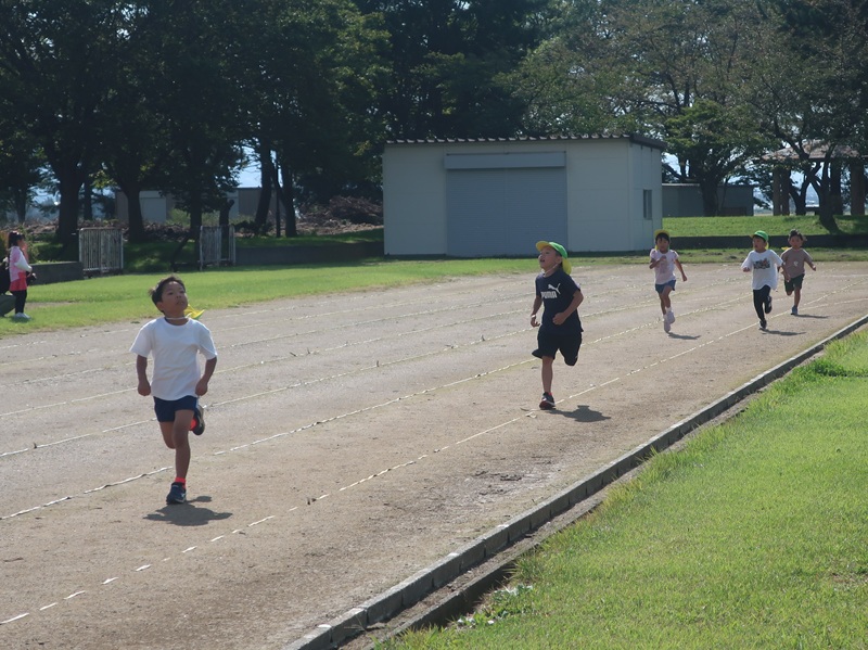 前日夜の雷にはびっくりしましたが、トラック内は水はけもよく、無事に走り切ることができた子どもたち。練習の成果を発揮して一生懸命走りました。本番当日は見にいらっしゃる保護者さんもたくさんいて緊張もあった子どもたちでしたが、かっこいいところを見せようと、練習の時よりもさらに奮起し、一番の頑張りを見せてくれました。