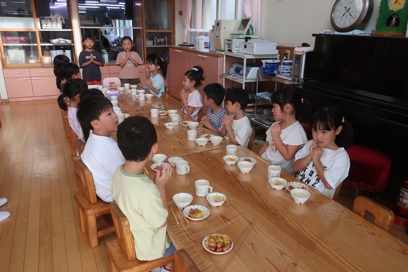次の日はみんなで起床、朝食。日中は思い出製作やスイカわりごっこを楽しみました。